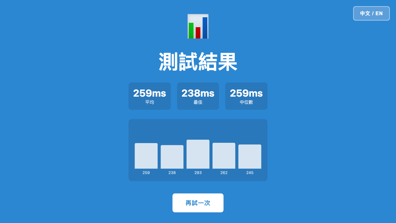 需注意,此測試僅評估「視覺刺激 → 手部操作」的反應流程,並不涵蓋實際駕駛所需的多步驟判斷、腳部動作、煞車系統延遲或真實道路環境等變因。結果亦可能受到螢幕延遲、滑鼠反應速度與設備效能影響,僅供一般性參考,無法作為駕駛能力或道路安全表現的依據。