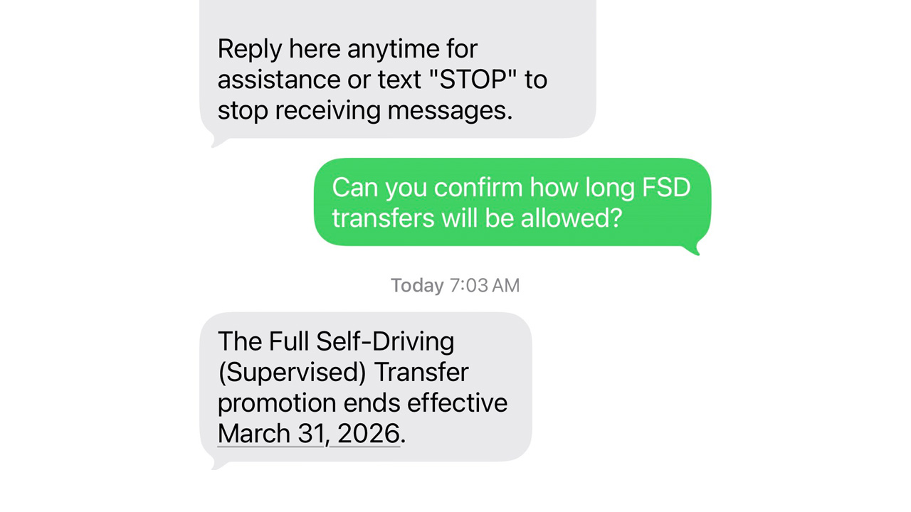 已有車主在社群分享,特斯拉已明確通知,「一次性 FSD 轉移」機制將於 2026 年 3 月 31 日截止。根據最新寄送給客戶的官方說明,只要在期限前完成新車下訂,即使交車時間較晚,仍可依規定申請授權轉移。