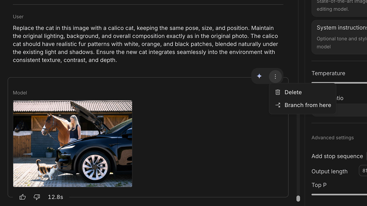 除了刪除不理想的結果外,Google AI Studio 也支援重新編輯提示詞,或上傳、替換參考圖片,讓系統能依據新的內容重新生成畫面。這讓整體創作流程更靈活,對需要多次微調的使用者來說特別方便。