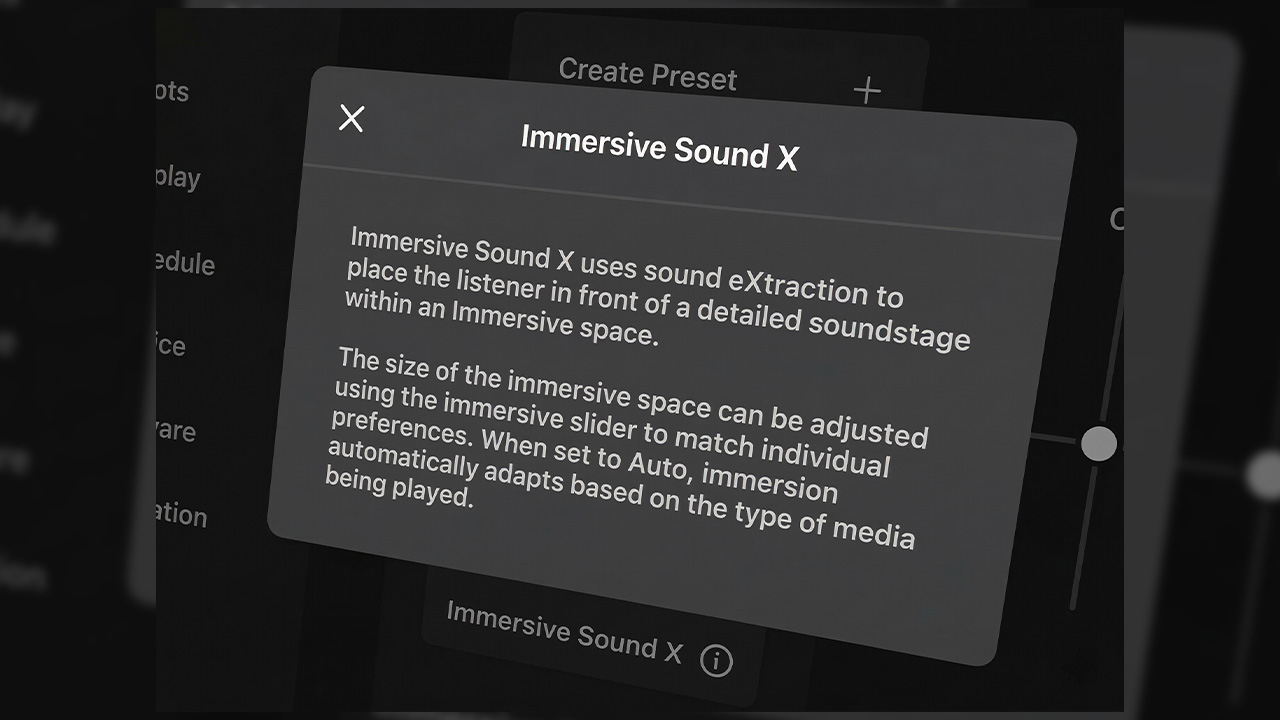 由於 Immersive Sound X 依賴演算法即時處理音訊,音源品質會直接影響空間音場的細膩度與層次感。若音訊壓縮過高,人聲與樂器定位容易變得模糊,沉浸效果也會降低。因此建議優先使用較高品質的音訊來源,例如 Tidal HiFi(Wi-Fi 下常達 900–1000 kbps 以上)或透過 USB 播放 FLAC、ALAC、WAV 等無損檔案(最高支援 24-bit / 192 kHz),能提供更清晰的人聲定位與更完整的聲場表現。