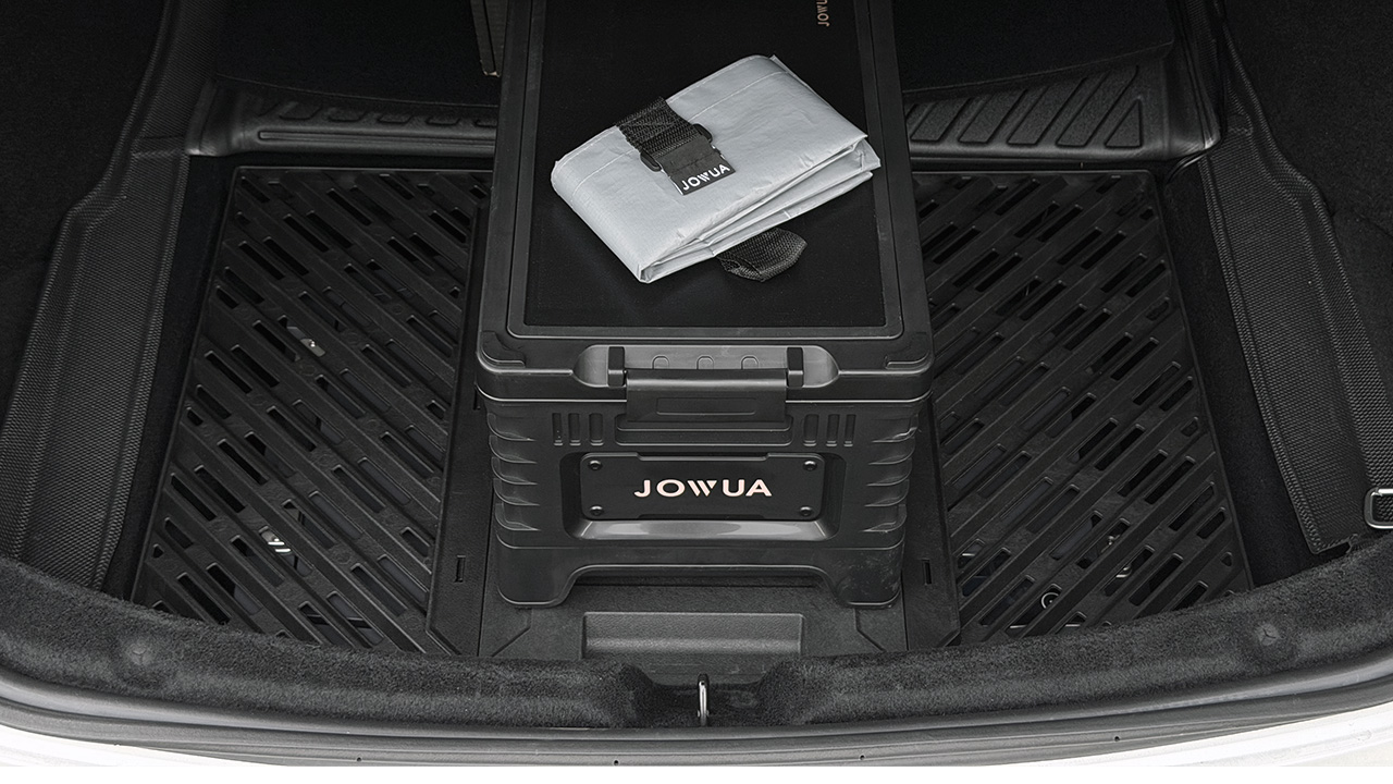 在未使用、不連接電源的情況下,JOWUA 行動冰箱也能直接擺放於後行李廂中,體積不會明顯壓縮載物空間,外觀與車內配置自然融合,平時收納不需額外拆卸或調整,使用彈性相當高。