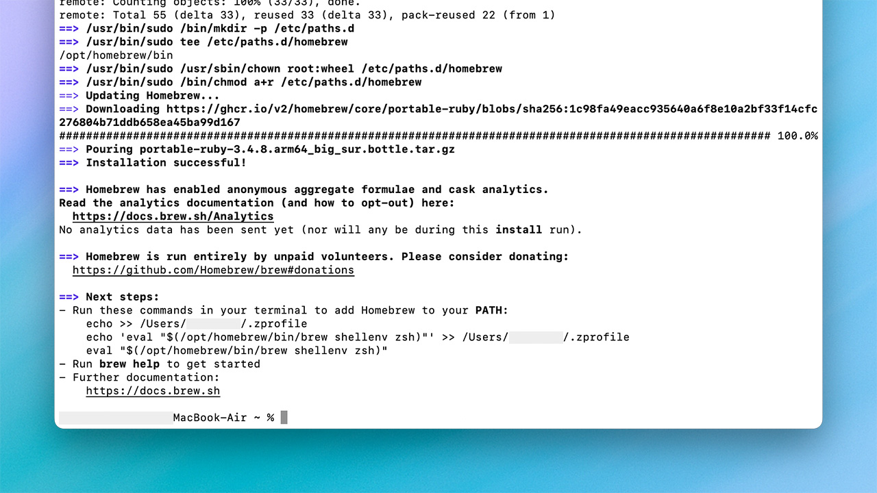 echo 'eval "$(/opt/homebrew/bin/brew shellenv)"' >> ~/.zprofile