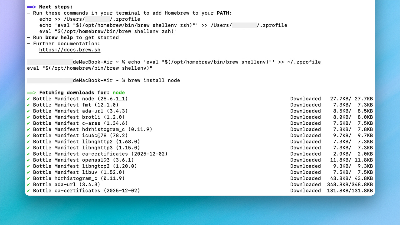 Homebrew 是 macOS 上最成熟的套件管理工具。透過它安裝 Node.js,可以確保版本一致、依賴完整,也能避免常見的權限與 PATH 錯誤。