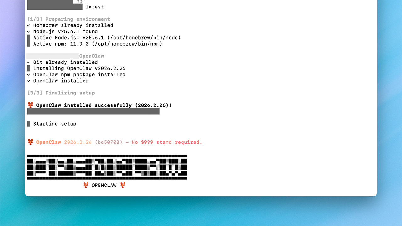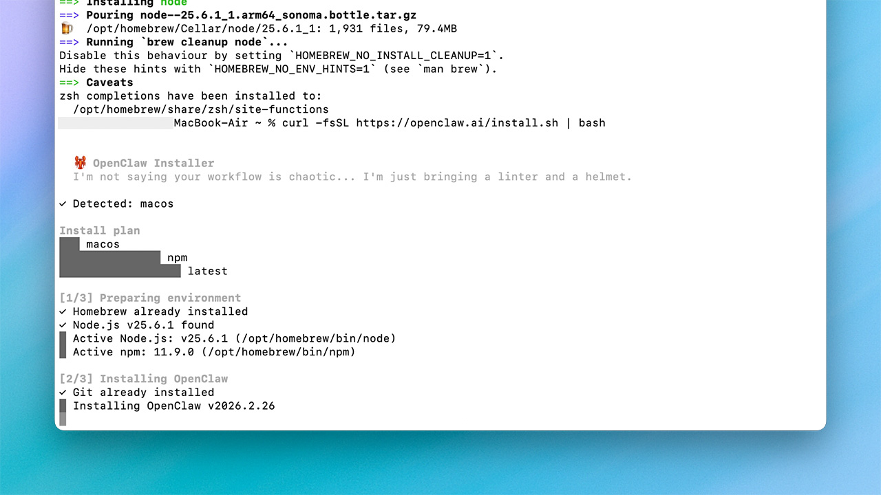 有了 Node 環境後,就可以安裝 OpenClaw。