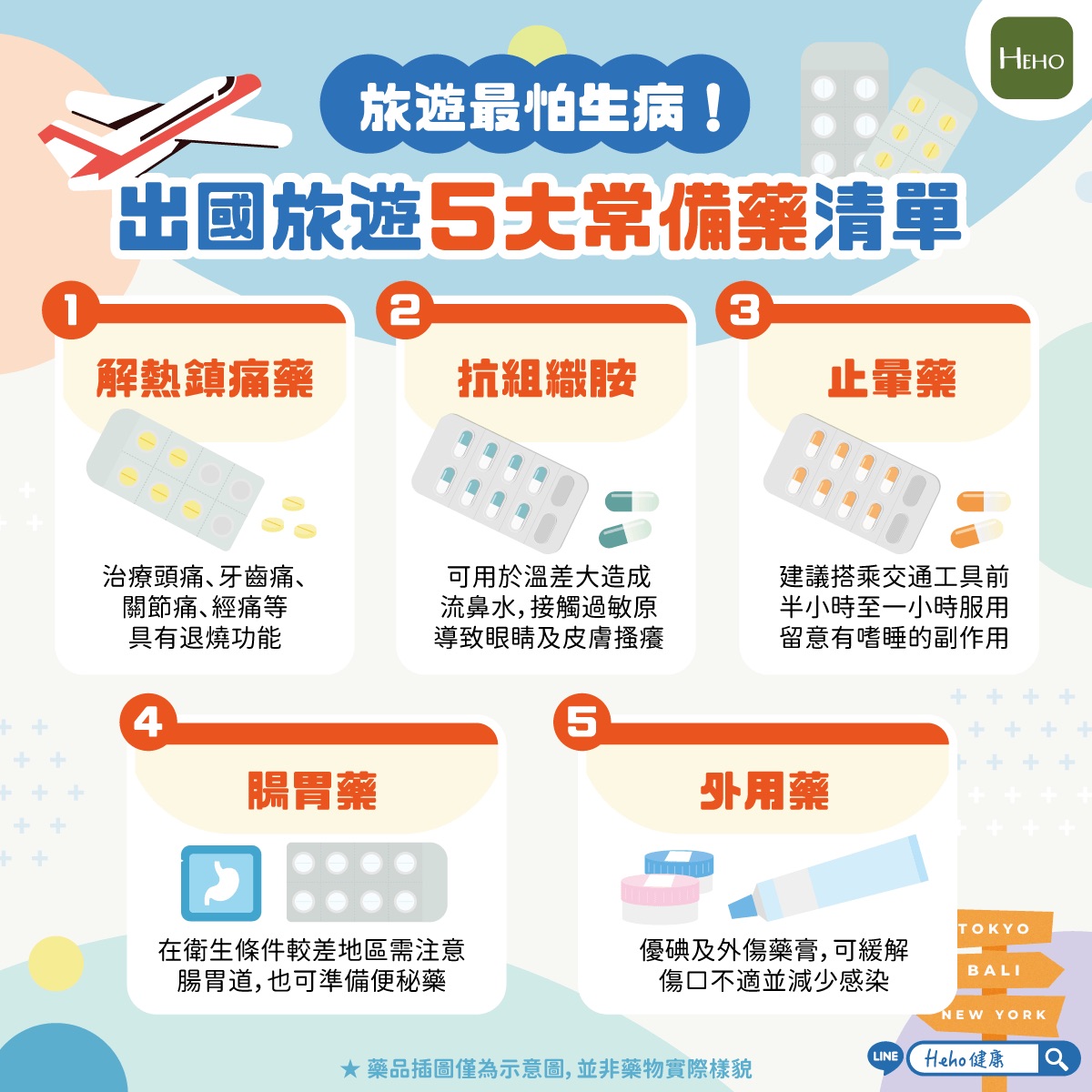 重點不在藥品越多越好,而是提前準備最常見、最可能影響行程的小毛病用藥。