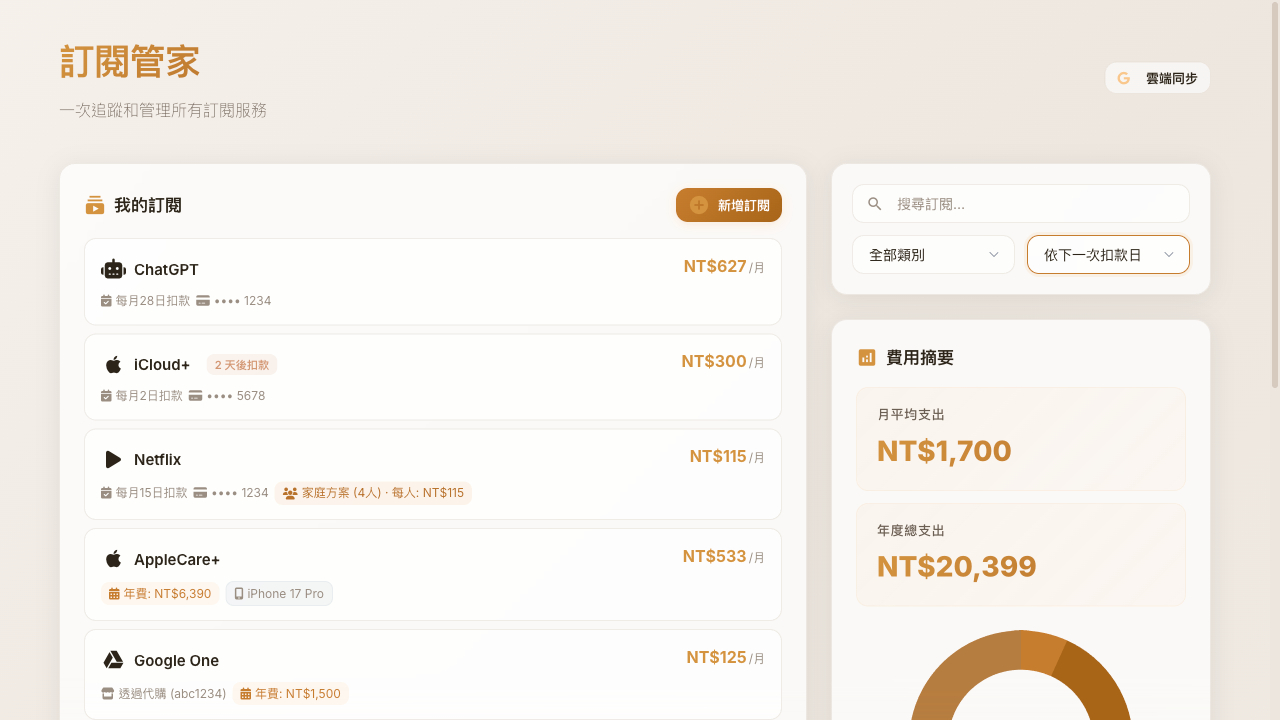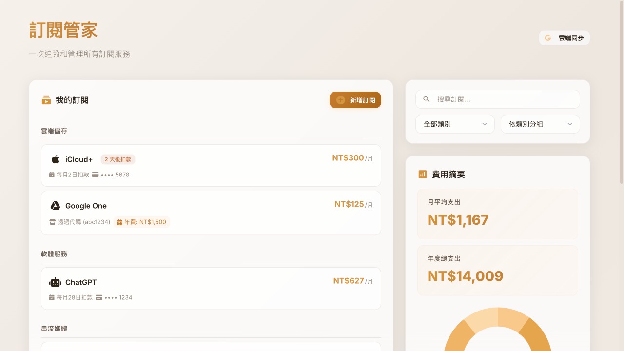 訂閱管家|一次追蹤和管理所有訂閱服務