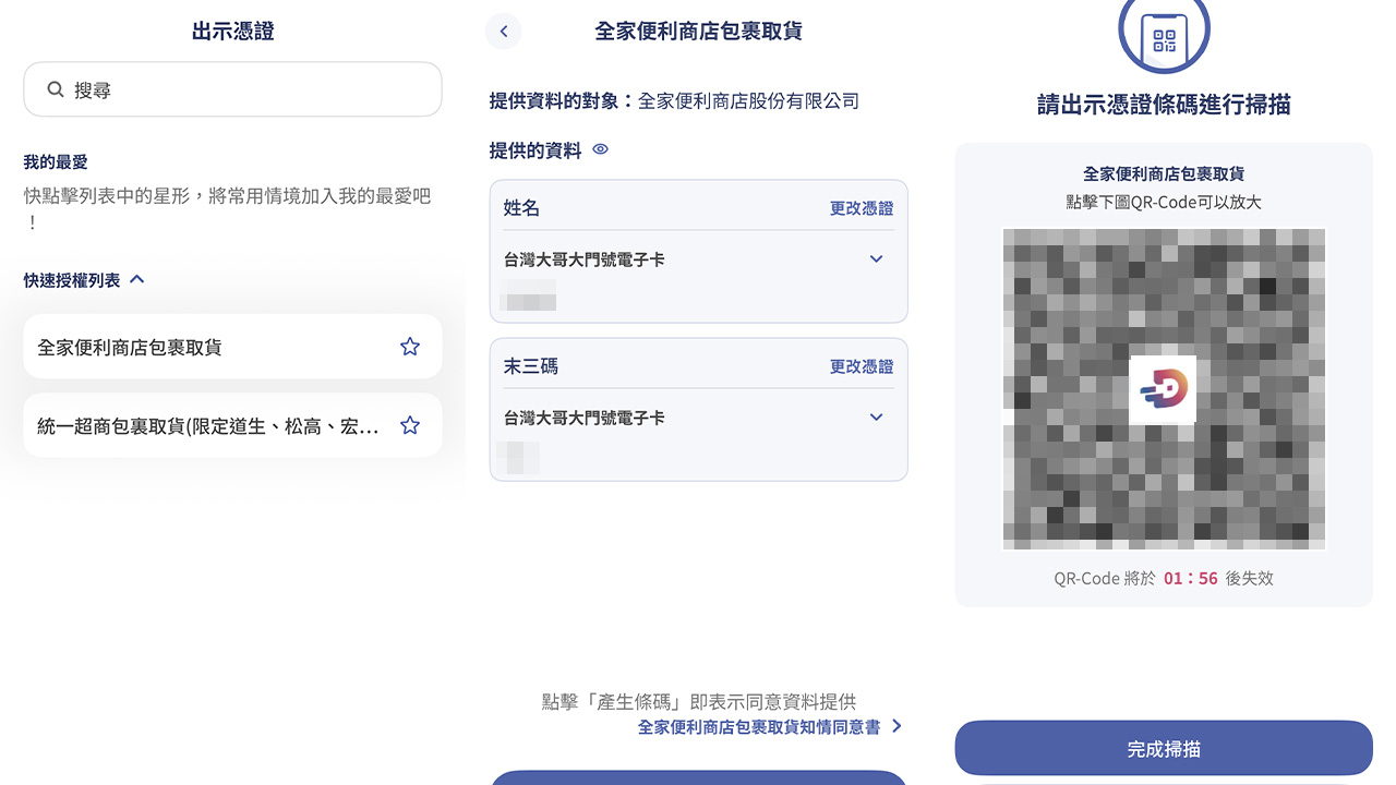 現在民眾已能透過「數位憑證皮夾」在超商完成包裹取件。全家便利商店自 12 月 17 日起全面上線,完成一次性設定後即可使用;7-Eleven 則自 12 月 24 日起啟動導入,採分階段開放,實際支援狀況將依各門市上線進度為準。