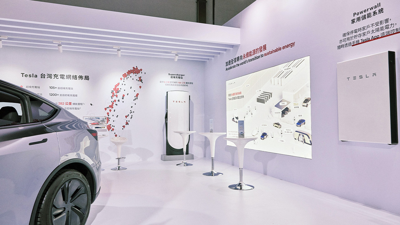 能源解決方案方面,現場展出第四代 V4 超級充電座、第三代壁掛式充電器,以及支援太陽能系統整合的家用儲能產品 Powerwall,協助用戶實現備援儲能與 EV 充電雙重目標。