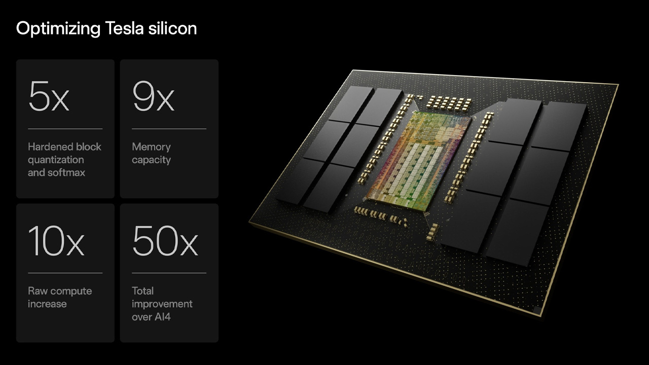 AI5 是一個從晶片架構到系統整合皆重新設計的全新世代,與 HW4(AI4)有明確的代際差異。其設計重點包含支援更大型神經網路、更高頻感知資料處理與近人類決策等級的即時推論能力。