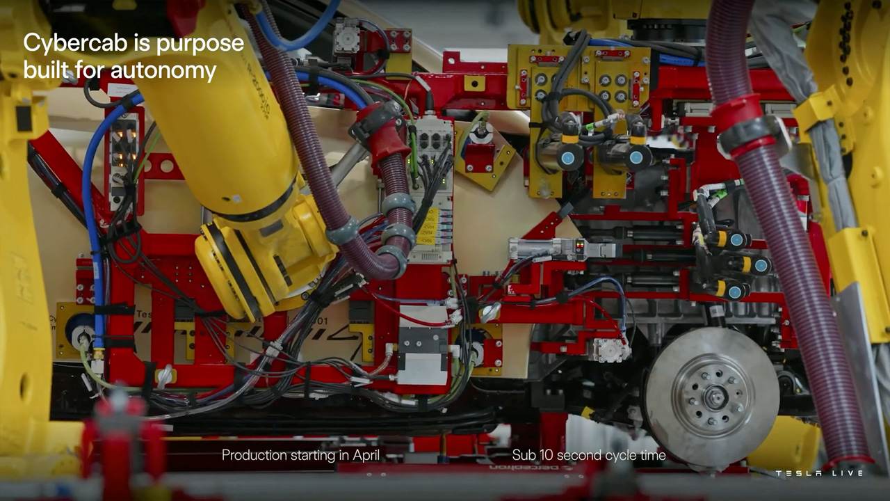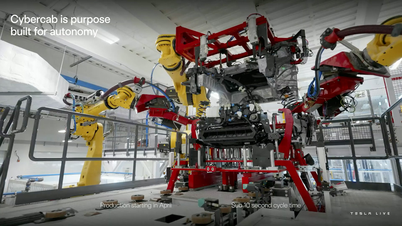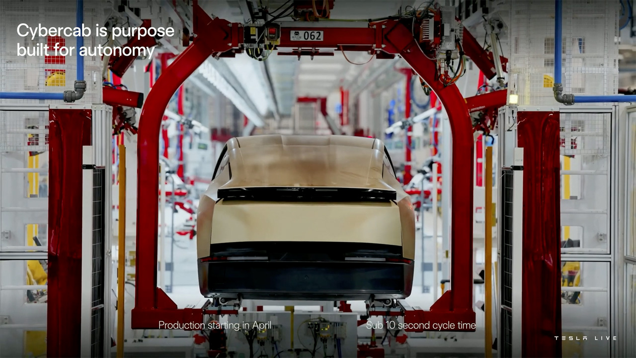 根據特斯拉於股東大會上的最新說法,Cybercab 計畫於 2026 年啟動量產。該車不僅採用模組化並行製造,還結合大型一體壓鑄(Gigacasting)與嵌入式複合外板技術,從設計階段便以 Robotaxi(自動駕駛計程車)應用為導向,目標是打造低成本、高耐用、可快速維護的自駕平台。護的自駕平台。