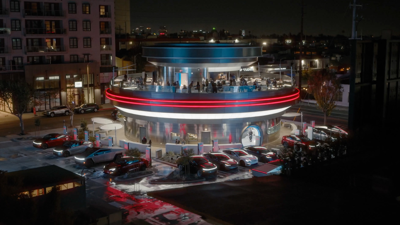 洛杉磯據點也加入 drive-in 電影螢幕與大面積座位配置,讓充電過程不再只是等待。未來新據點是否延續這些設計,仍有待後續規劃進一步揭露。