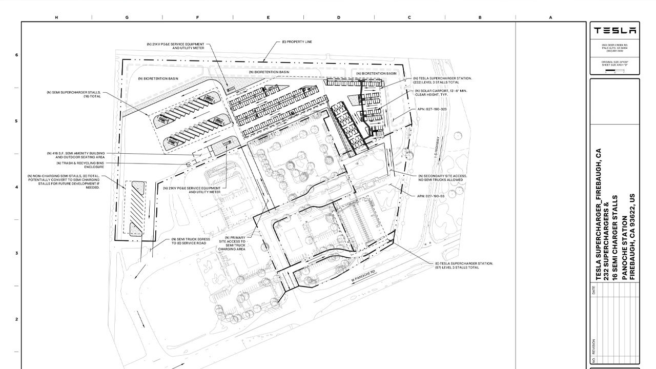 加州 Firebaugh 站點目前已取得條件使用許可,正處於規劃階段。該站預計擴建至總計 304 支超級充電座,包含既有的 V3 超級充電設備,並新增 232 個乘用車充電位與 16 個專為 Tesla Semi 電動卡車設計的 Megacharger 充電位,使其未來可能成為重要的物流運輸節點。