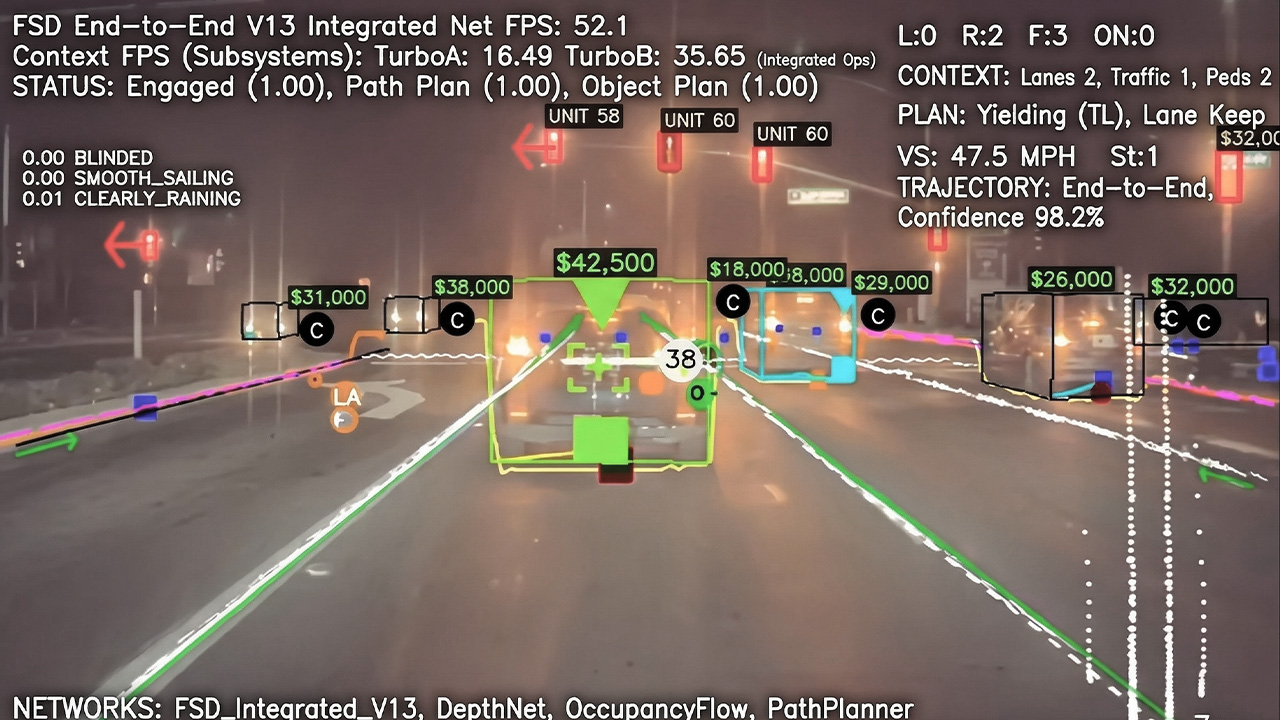 當系統判定事故難以完全避免時,車輛將透過即時視覺(Grok Vision)分析周遭車輛的市場殘值、維修成本與整體財損結果,在不同碰撞路徑之間進行判斷,優先選擇整體損失較低的方案,並輔助轉向降低經濟衝擊。