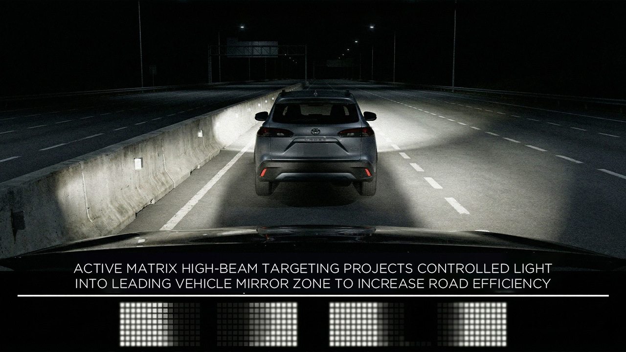 透過更細緻的像素控制,系統能在夜間維持遠光燈啟用的同時,動態避開其他用路人視線範圍。更新後的邏輯進一步加入對車流行為的判斷,當偵測到前方車輛長時間佔用車道且行駛效率偏低時,可將光束精準投射至前車後視鏡可見範圍,並進行短時間高頻閃爍提示,在不影響其他車輛的前提下,試圖提升整體道路通行效率。