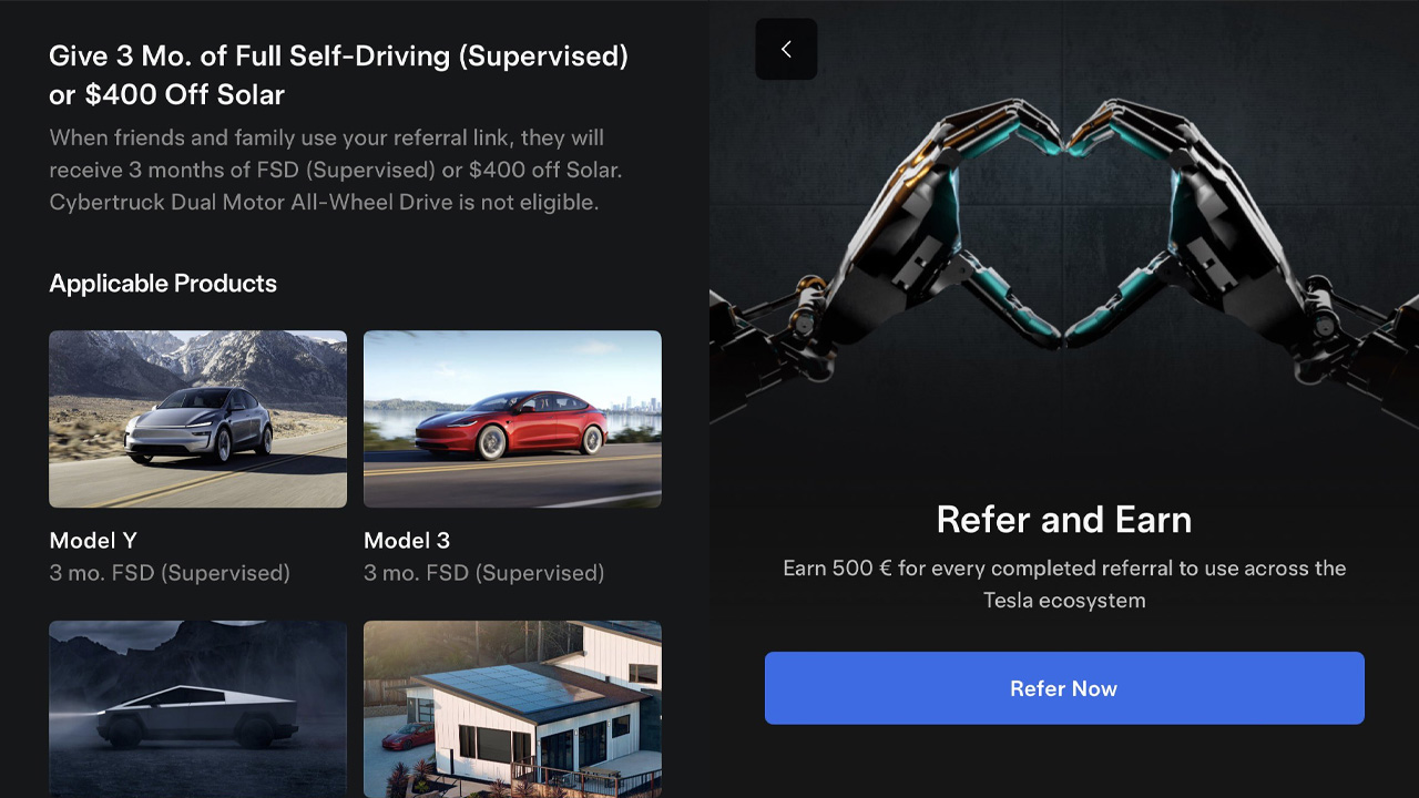 2025 年 9 月,特斯拉再次調整美國的推薦計畫,針對高階車款提供更高回饋:
