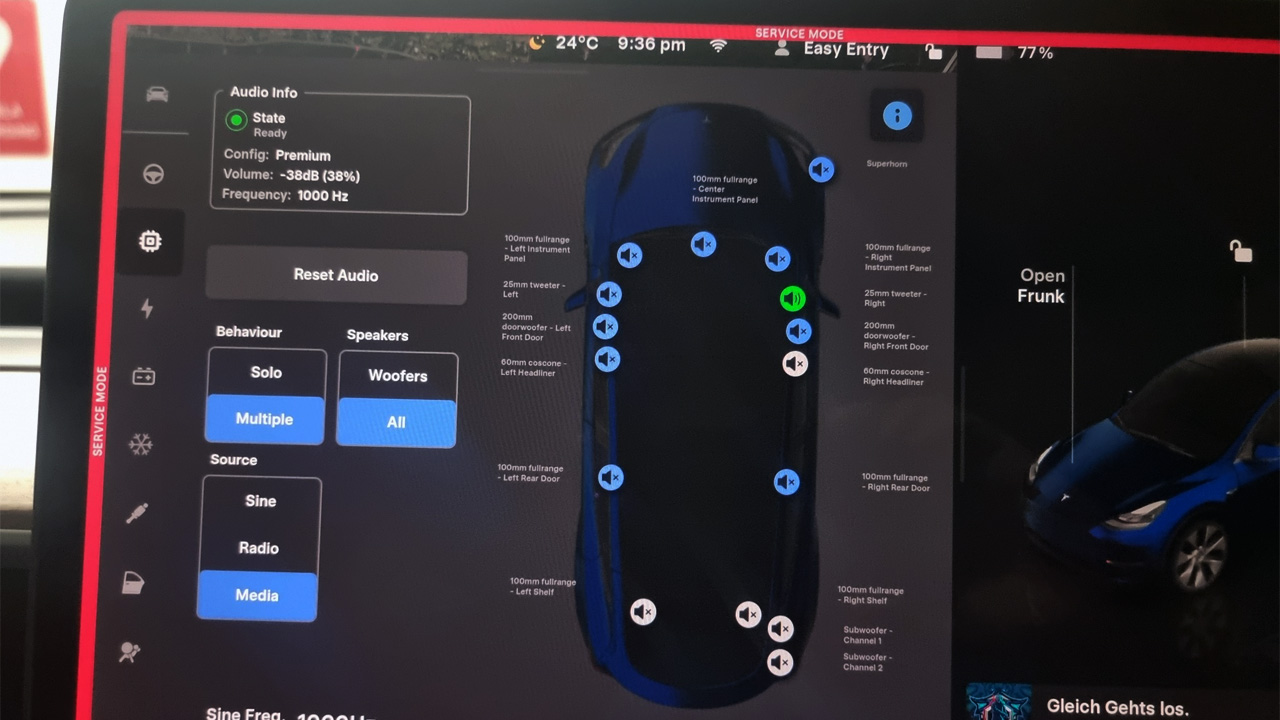高階版本的正面評價,多集中在清晰度、低頻控制與聲場定位。許多車主形容中高頻表現清脆透明,人聲結像穩定且位置明確;低頻具衝擊力,同時保持收放乾淨;在適當調整下,沉浸式音效可營造出具包覆感的音場。至於 Model S 與 Model X 所搭載的高保真度(Ultra High Fidelity)音響系統,則常被視為接近錄音室等級的原廠配置。