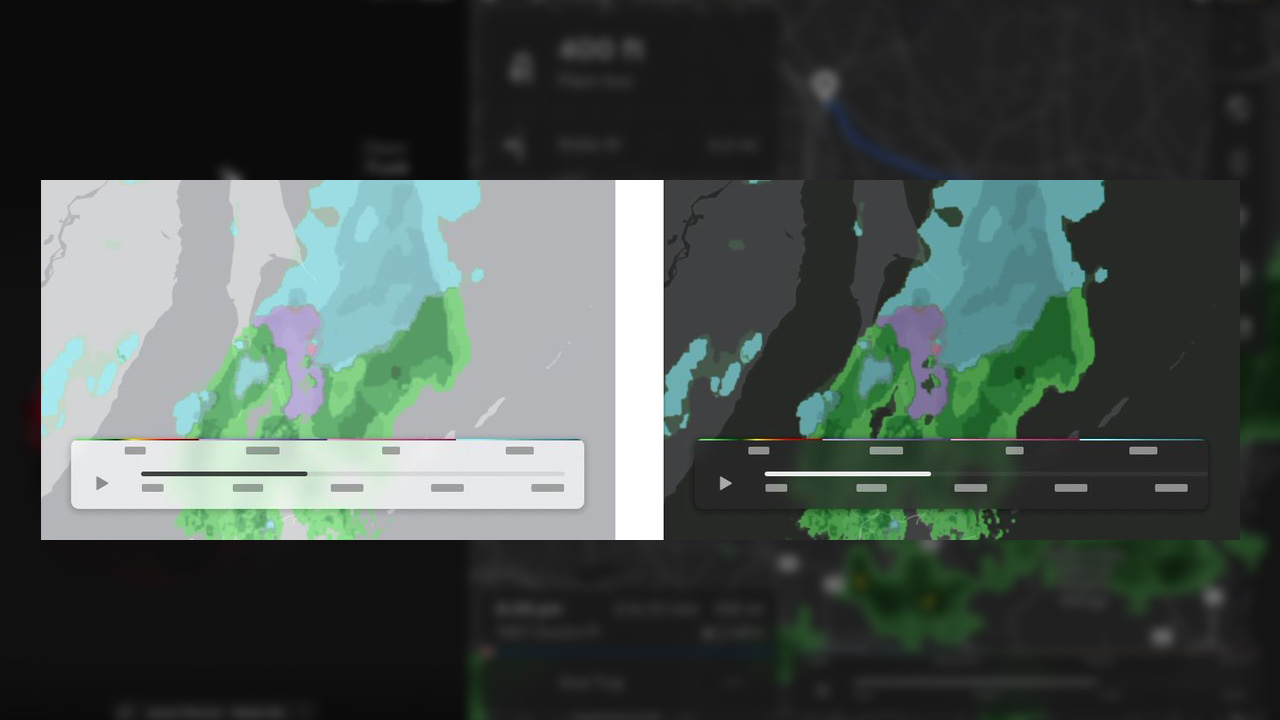 在導航系統方面,天氣地圖調整雨雪情境的色彩呈現,並新增過去一小時的變化資訊,讓駕駛能更清楚掌握行車路徑上的天氣狀況。