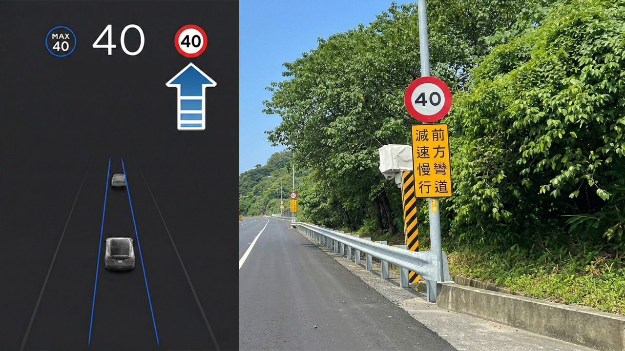 此情境也反映出台灣速限規劃與現代輔助駕駛系統之間的落差。部分路段速限變化缺乏漸進式銜接,使車輛可能在數百公尺內,從 100 公里降至 40 公里。對於高度依賴規則執行的輔助駕駛系統而言,這類不連續的速限標示,容易影響主動巡航定速的穩定度,也提高整體交通環境的不確定性。