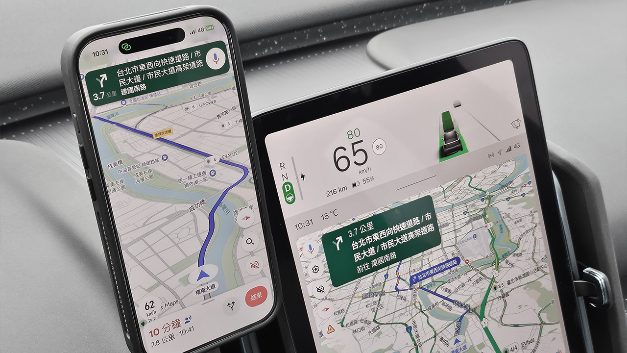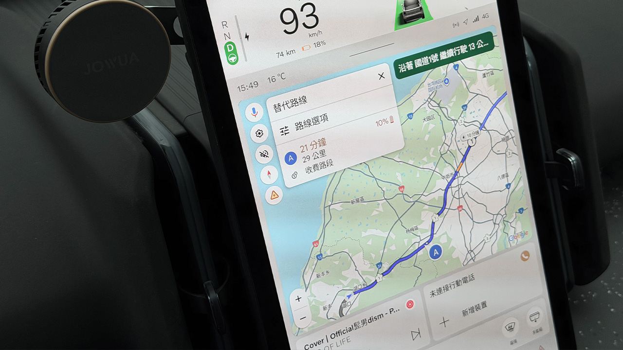 EX30 內建的 Google Automotive OS 是整體體驗的核心。登入帳號後,地圖標記、音樂清單即時同步,導航也會依電量自動規劃充電點。相比單純手機投影,原生系統的整合度與資訊完整性明顯更高。