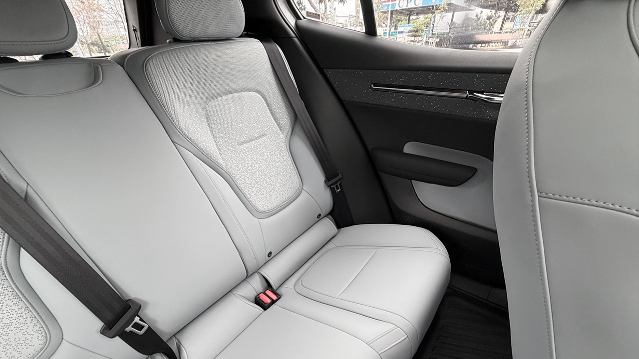高腰線設計讓 EX30 看起來更有安全感,但視野死角也相對明顯,特別是在側後方。不過 360 度環景影像系統補得非常到位,畫質清楚、標線準確,在路邊停車或倒車入庫時,可以很放心地依賴。