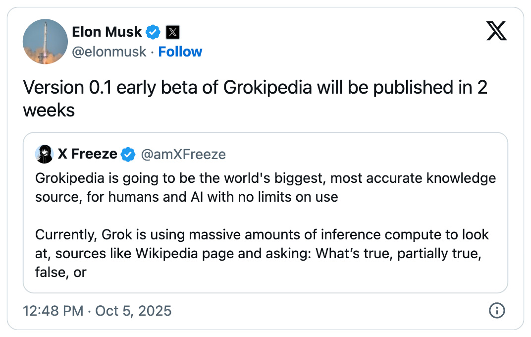 Elon Musk 宣布推出 Grokipedia:以 AI 為核心打造無偏見的開放知識平台