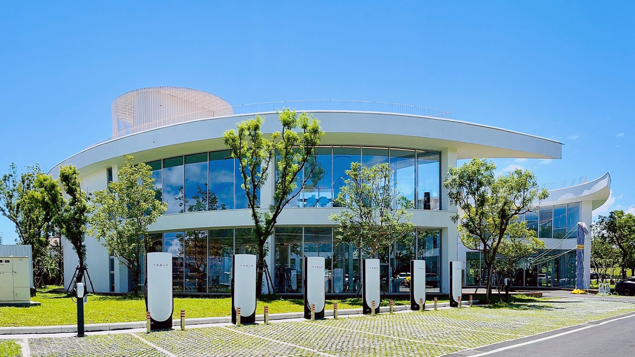 相較多數設於商場停車場或高速公路服務區的超級充電站,此據點將充電設施與品牌總部、閱讀空間及戶外廣場整合,形成複合式場域規畫。此類配置在台灣並不常見,也使站點功能從單純補電延伸至空間體驗。