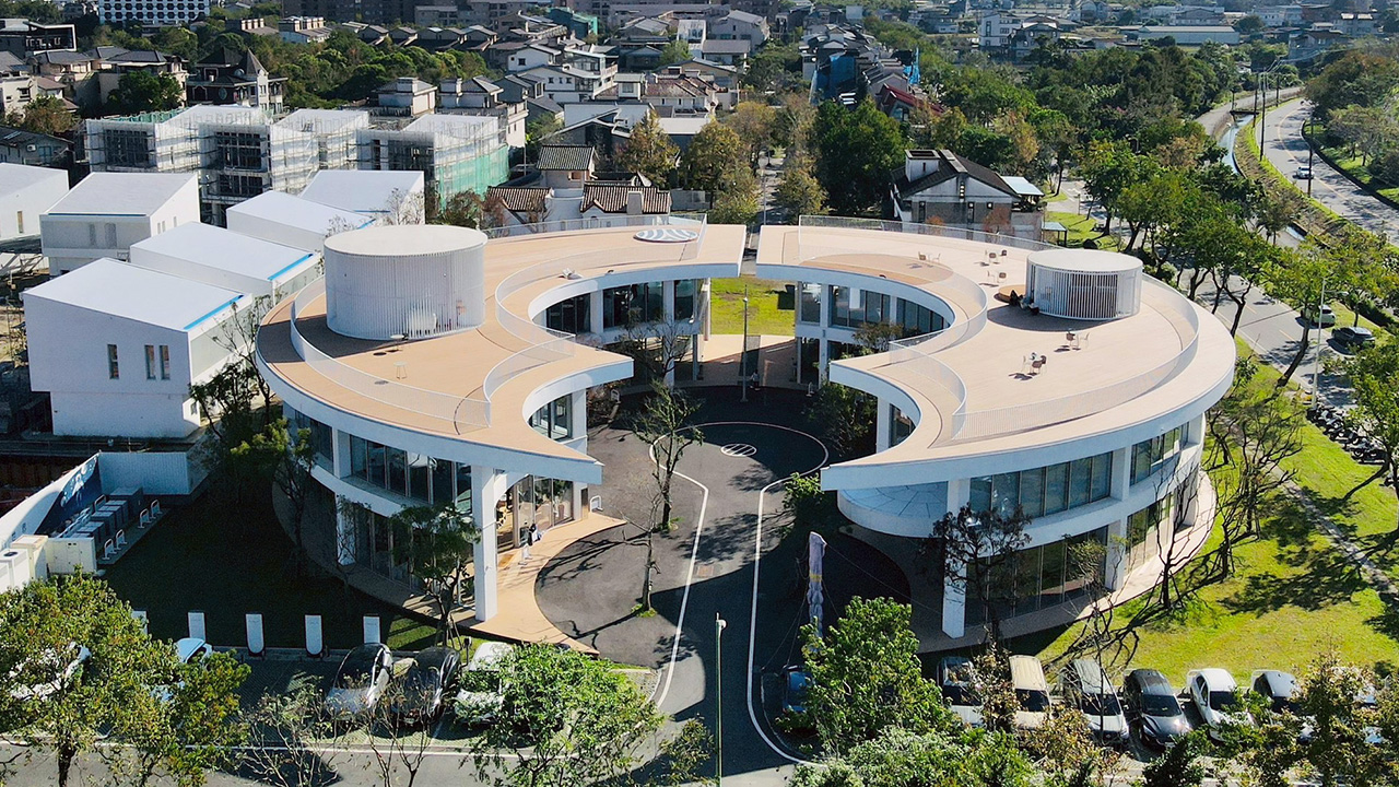 空間採圓形動線與可移動書架設計,搭配自然採光與弧形結構,營造具流動感的閱讀環境。車主可在充電期間入館翻閱書籍,或與家人於戶外廣場活動,使靜態閱讀與動態休憩並行。
